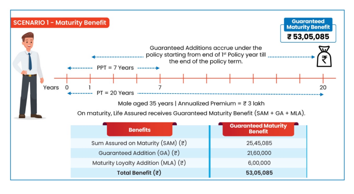 Enjoy Guaranteed Maturity Benefits inclusive of accrued Guaranteed Additions & Maturity Loyalty Additions at policy maturity